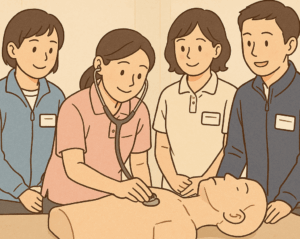 人体型シミュレータを活用したシミュレーション教育プログラムを策定して訪問看護師を対象に研修を実施、フィジカルアセスメントの向上を目指します。